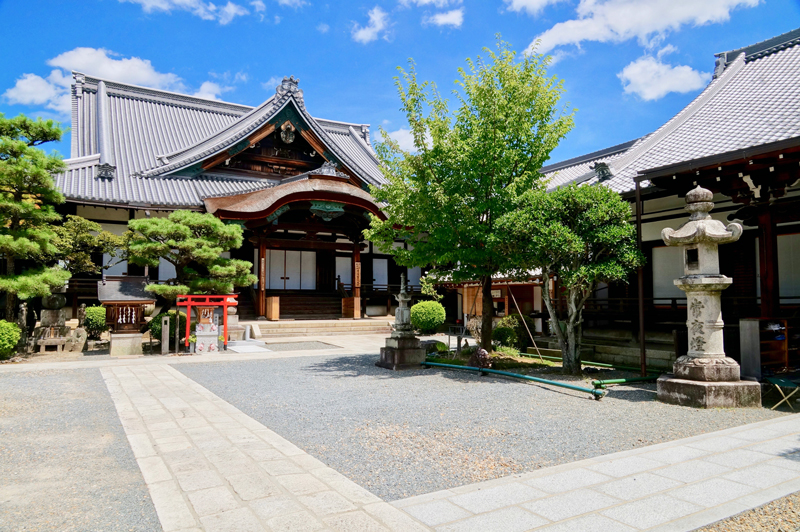 河原町丸太町の交差点を北上し府立医大病院を右手に見ながら、通りの左側(西側)をお歩き下さい。廬山寺の木立、コインパーキングを過ぎるとコンクリート塀が見えてきます。